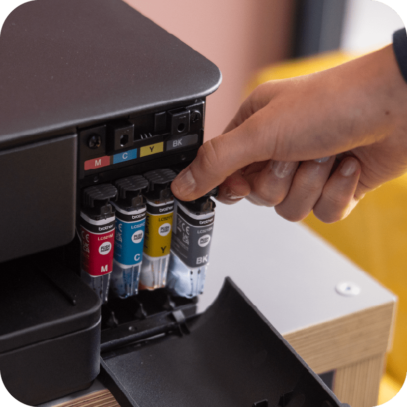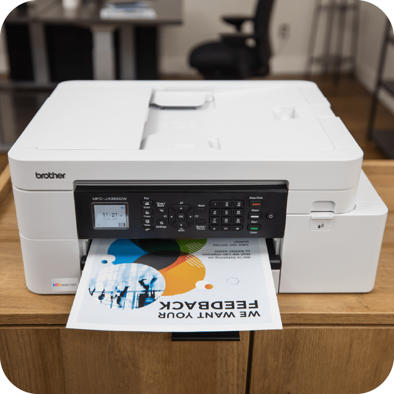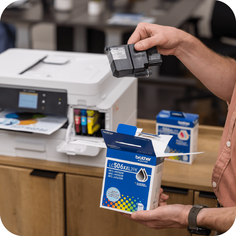 • MFC-J4355DW or MFC-J4555DW - compact, 2-sided (duplex) printing, 1 year of in-box ink3