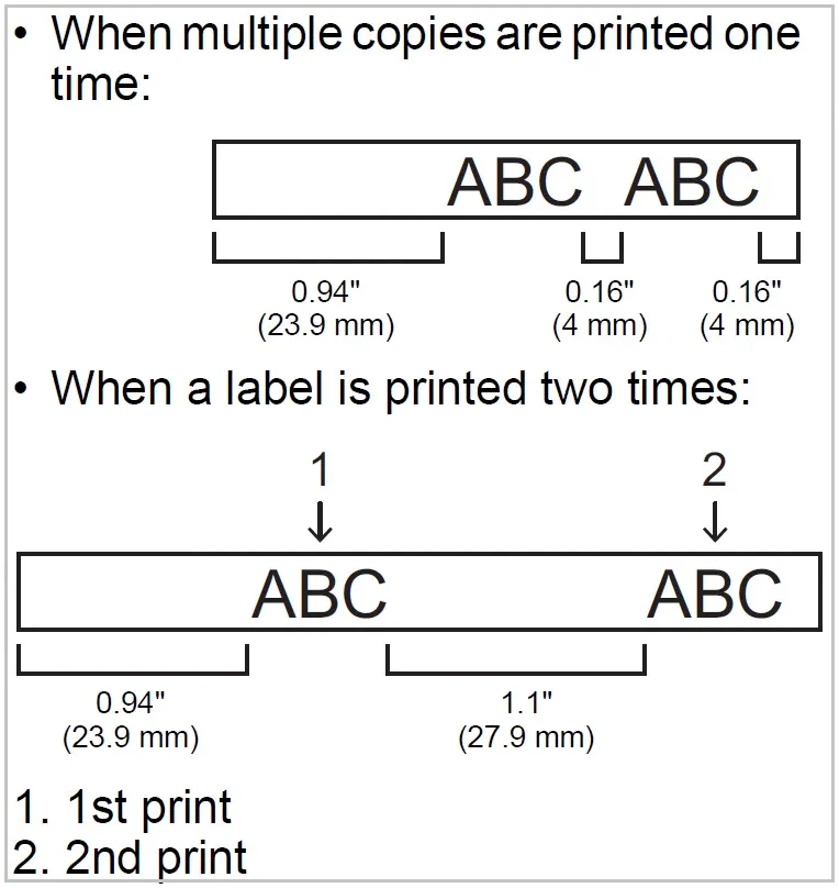 Each label is printed leaving a margin of 23.9mm of tape on each side of the printed text.