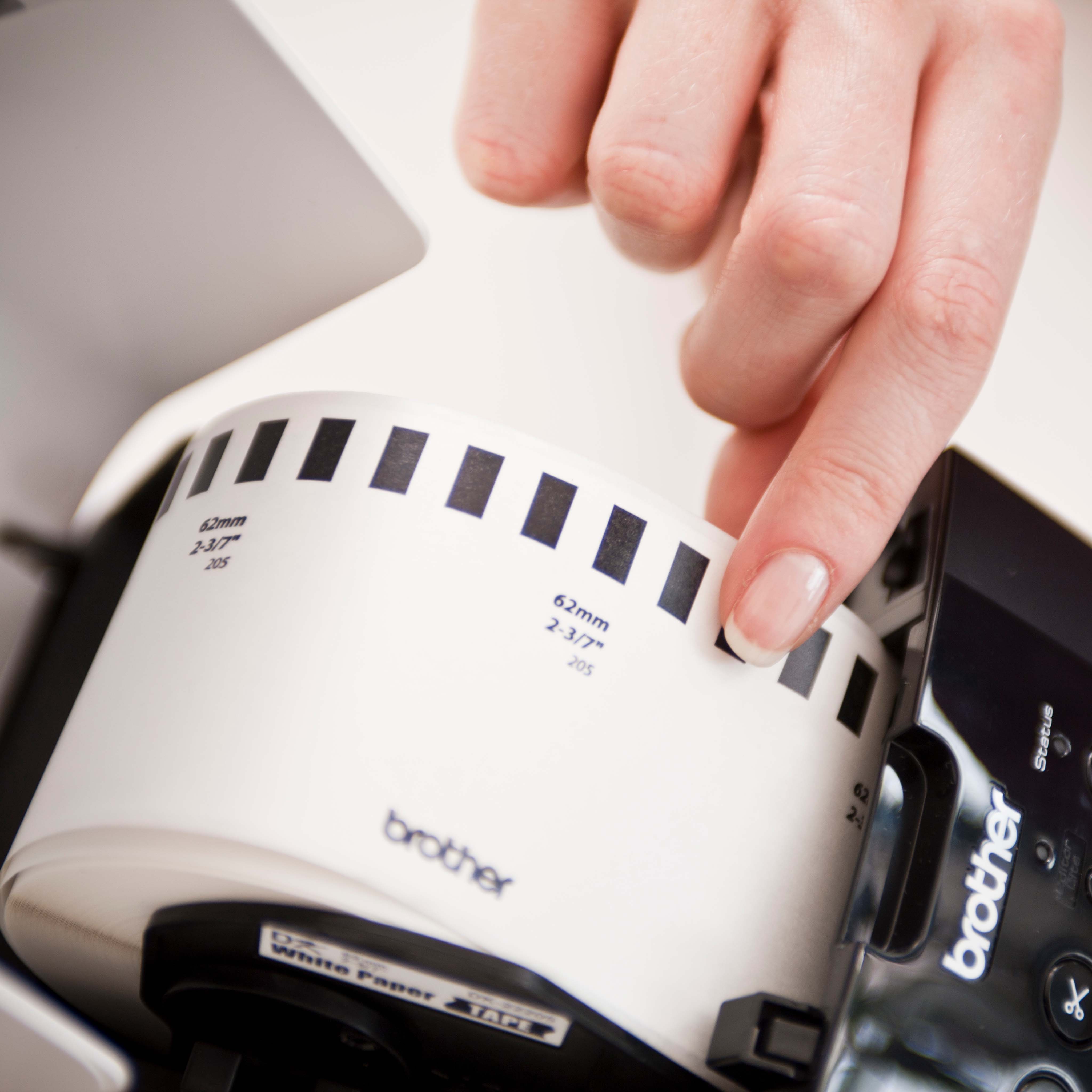 Choose from a variety of die-cut or continuous labels and use the built-in cutter to trim your label to the precise length needed (up to one metre)