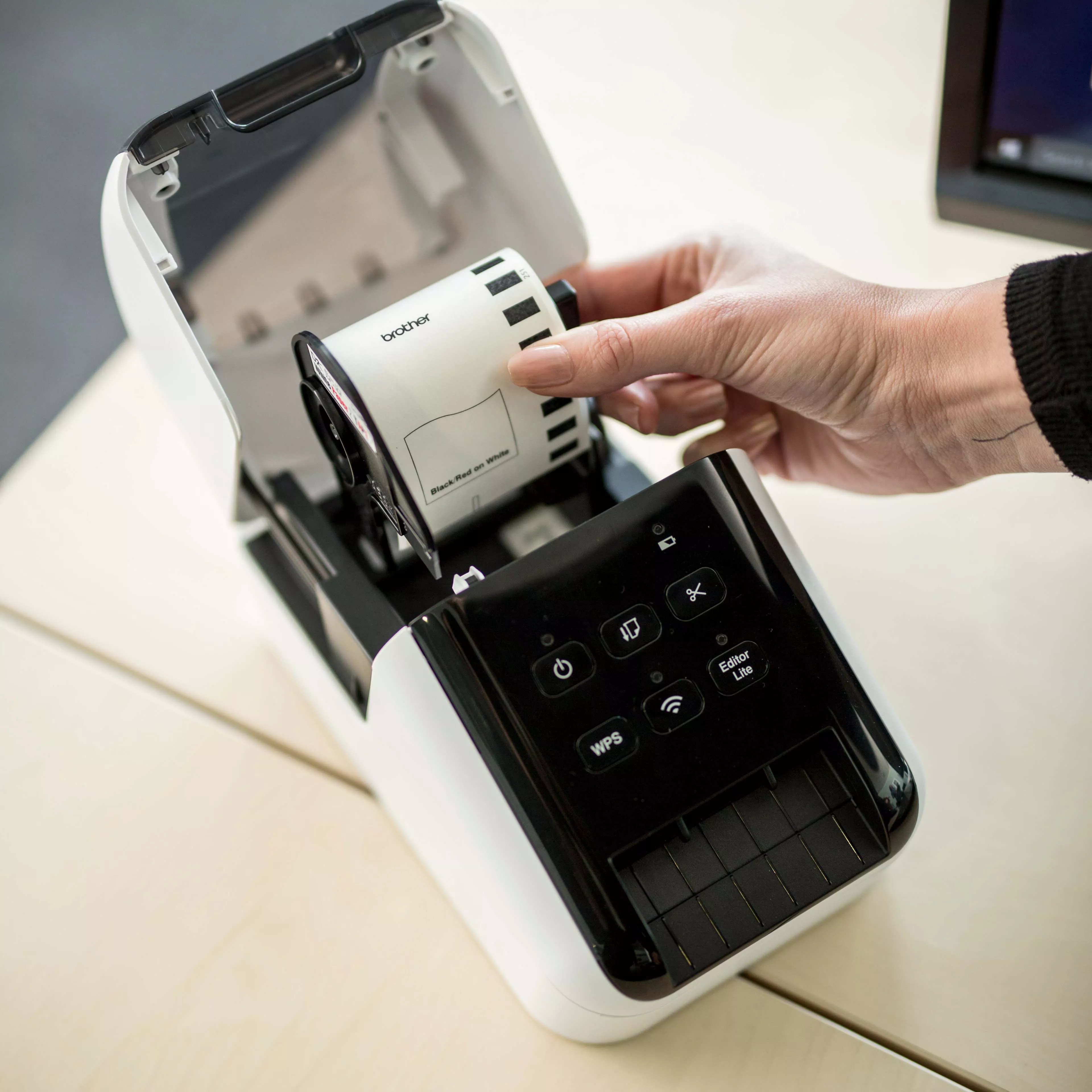 **Requires DK-22251 continuous roll to print in black and red
