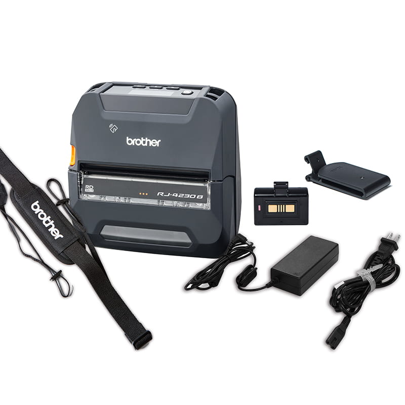 Bundle pack includes the printer, rechargeable Li-ion Battery, AC adapter, Shoulder Strap, Belt clip and receipt paper.