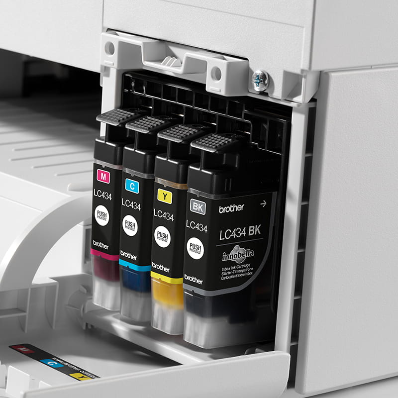*Based on average print volumes of approximately 100 pages at 60% black / 40% colour pages in accordance with ISO-IEC 24711 using 4 cartridges provided in-box. For more page yield information, see https://www.brother.com/pageyield