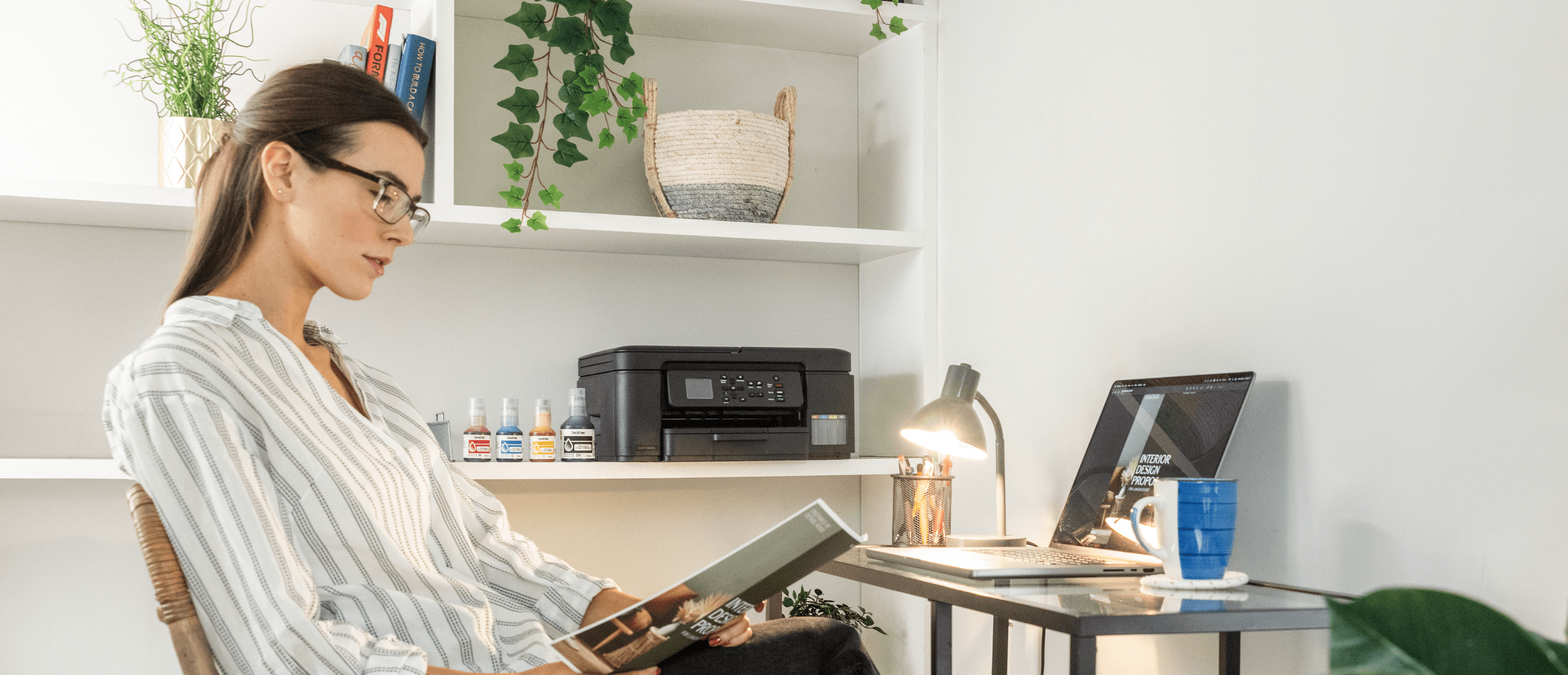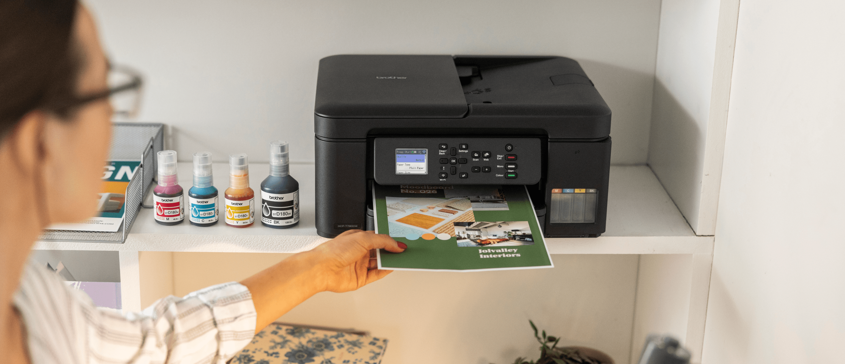 Designed to fit seamlessly into your space, the DCP-T780DW sits comfortably on a bookshelf, sideboard or in a study nook. Its low-profile, clutter-free design blends into the background - ready when you need it.