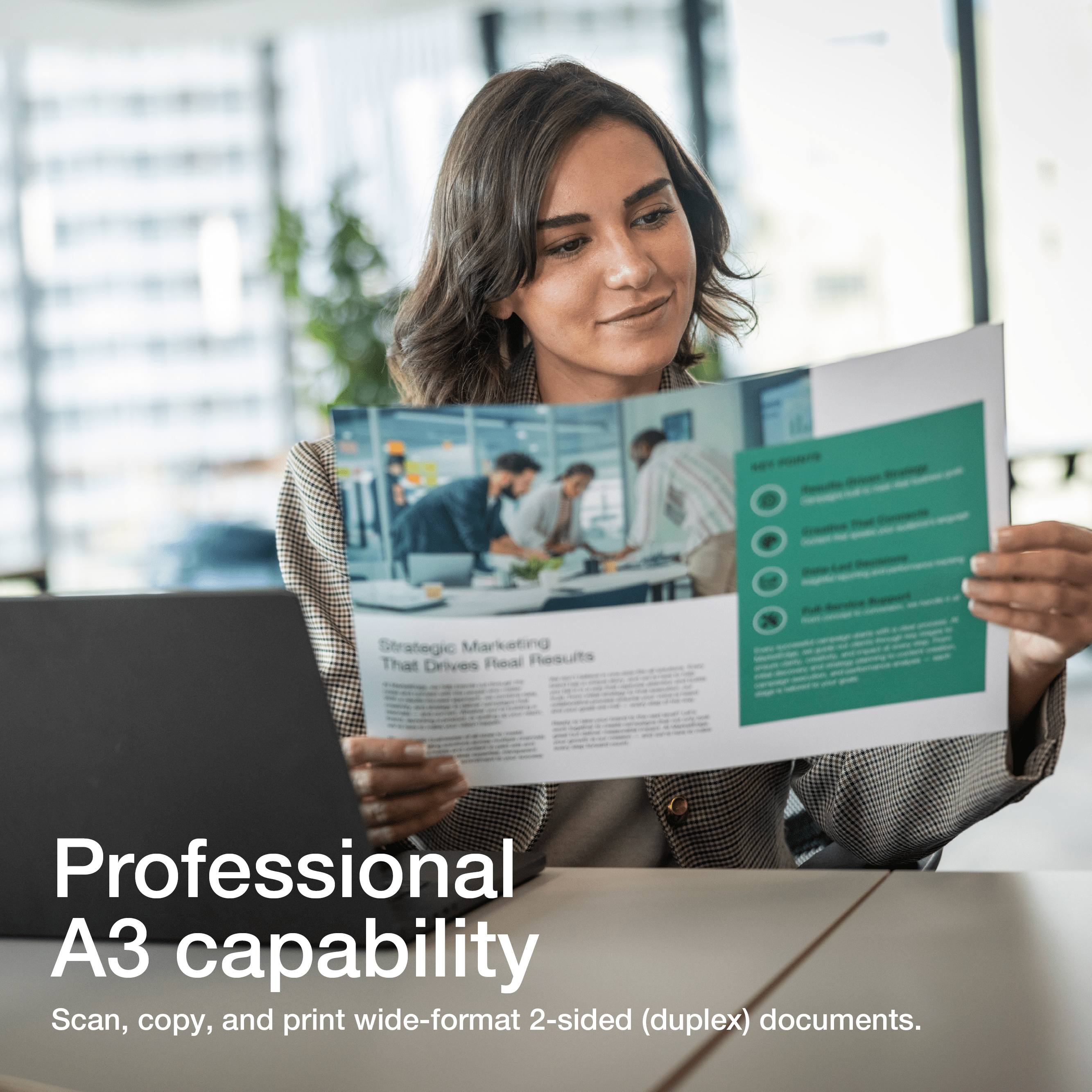 - Automatic 2-sided (duplex) A3 print and scan