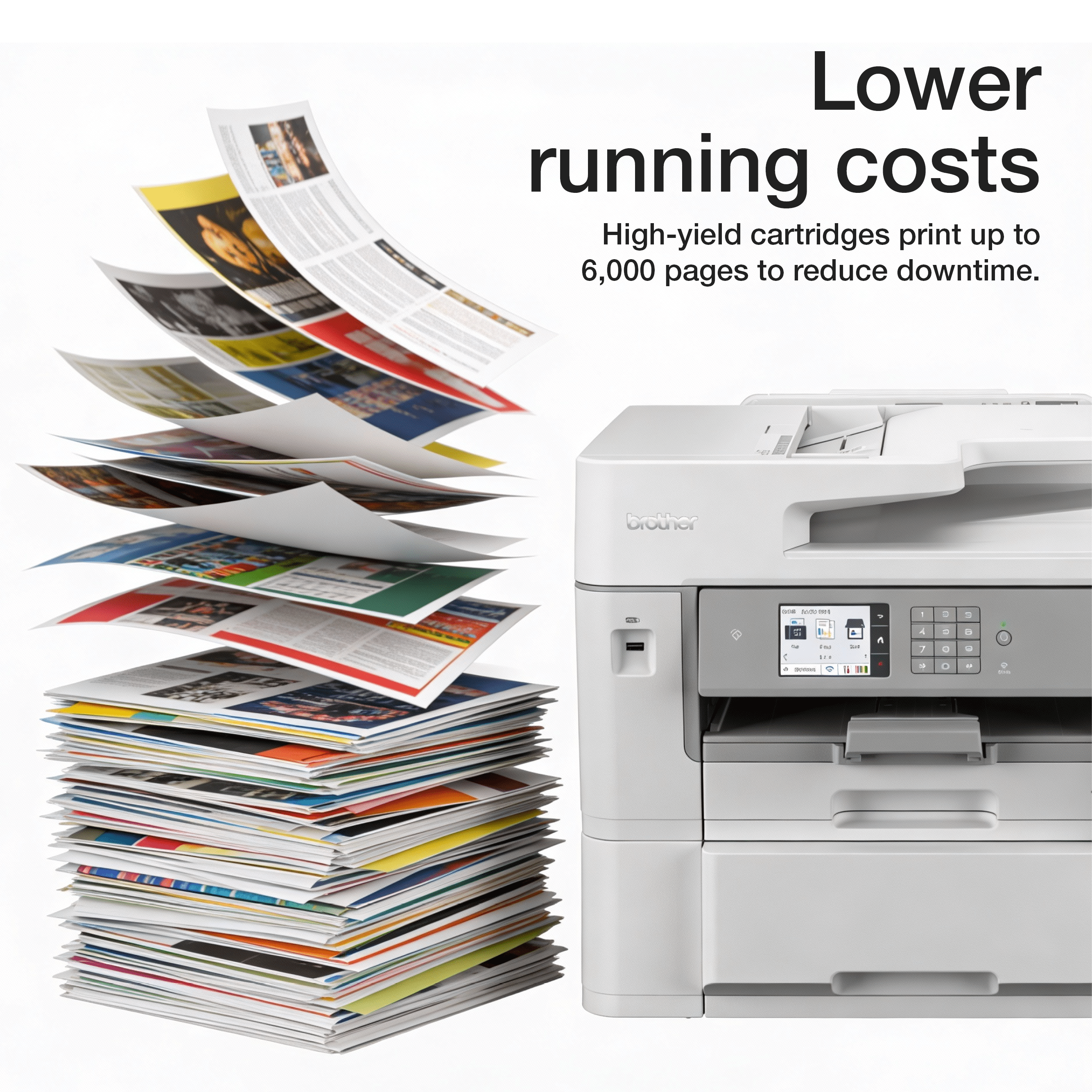 Reduce energy costs with inkjet technology that requires no warm-up. A rapid 4.4-second2 First Print Out Time saves power and reduces idle time, while automatic 2-sided (duplex) printing and high-yield cartridges significantly lower your environmental footprint.