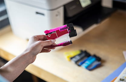 Get up to one year of ink in-box.⁵ Uses premium pigment inks for crisp text. Choose high-yield or super high-yield cartridges (up to 5,000 black, 2,500 colour pages)¹ to reduce cost per page.