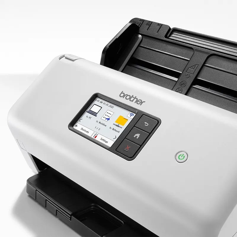 The ADS-3350W combines high-functionality with a simple, intuitive design in a compact footprint. It has a large 60-sheet ADF and can scan 2-sided (duplex) 40ppm (80ipm)