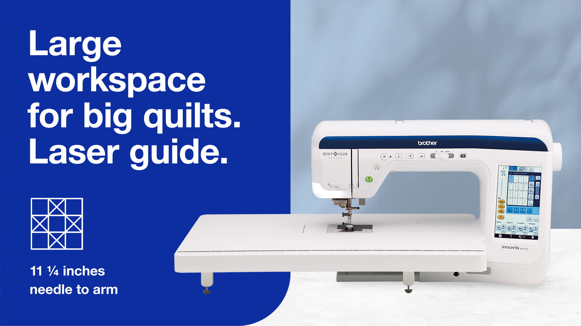 The large workspace makes handling fabric easier and ensures room for extra-large quilting, fashion and home décor projects