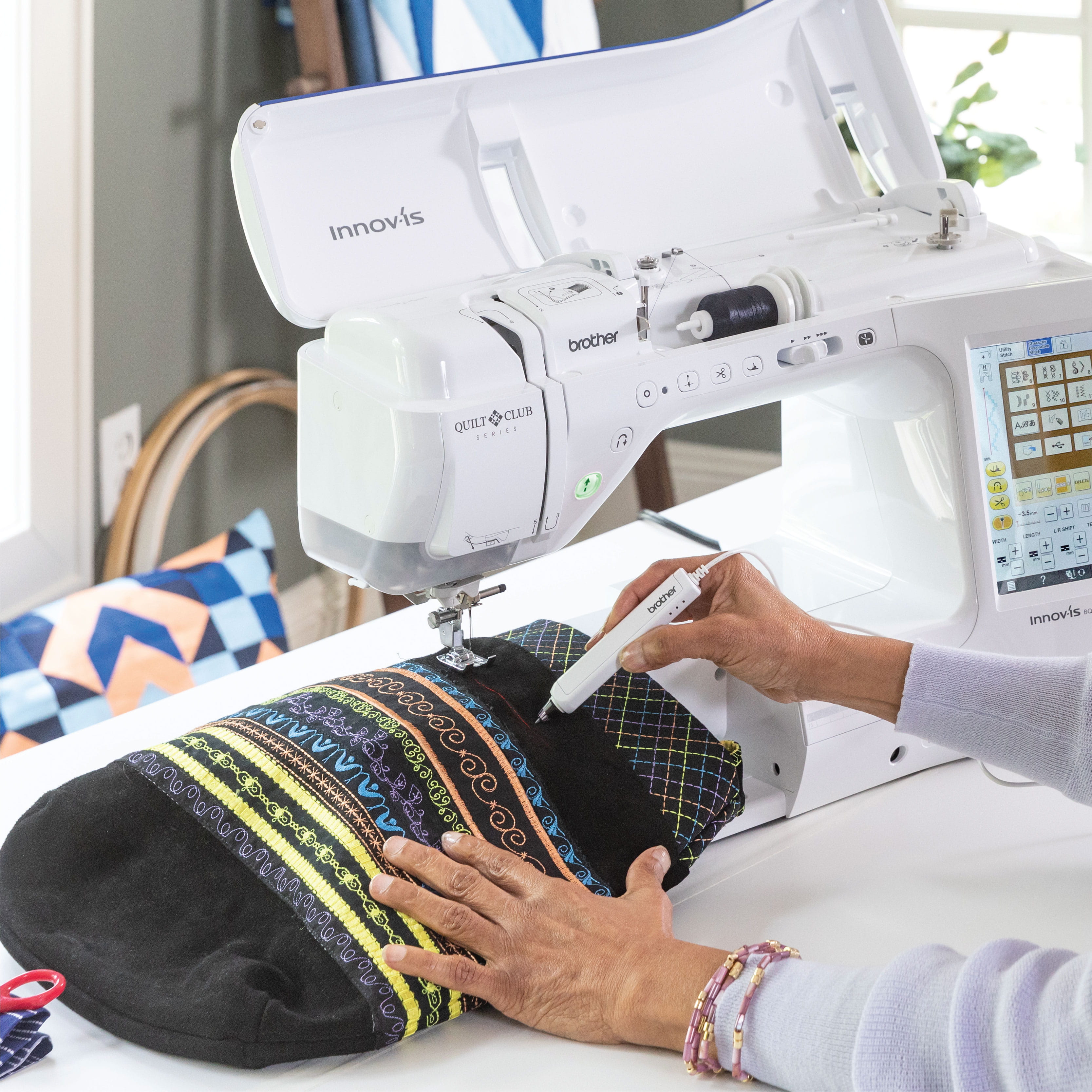 The large workspace makes handling fabric easier and ensures room for extra-large quilting, fashion and home décor projects