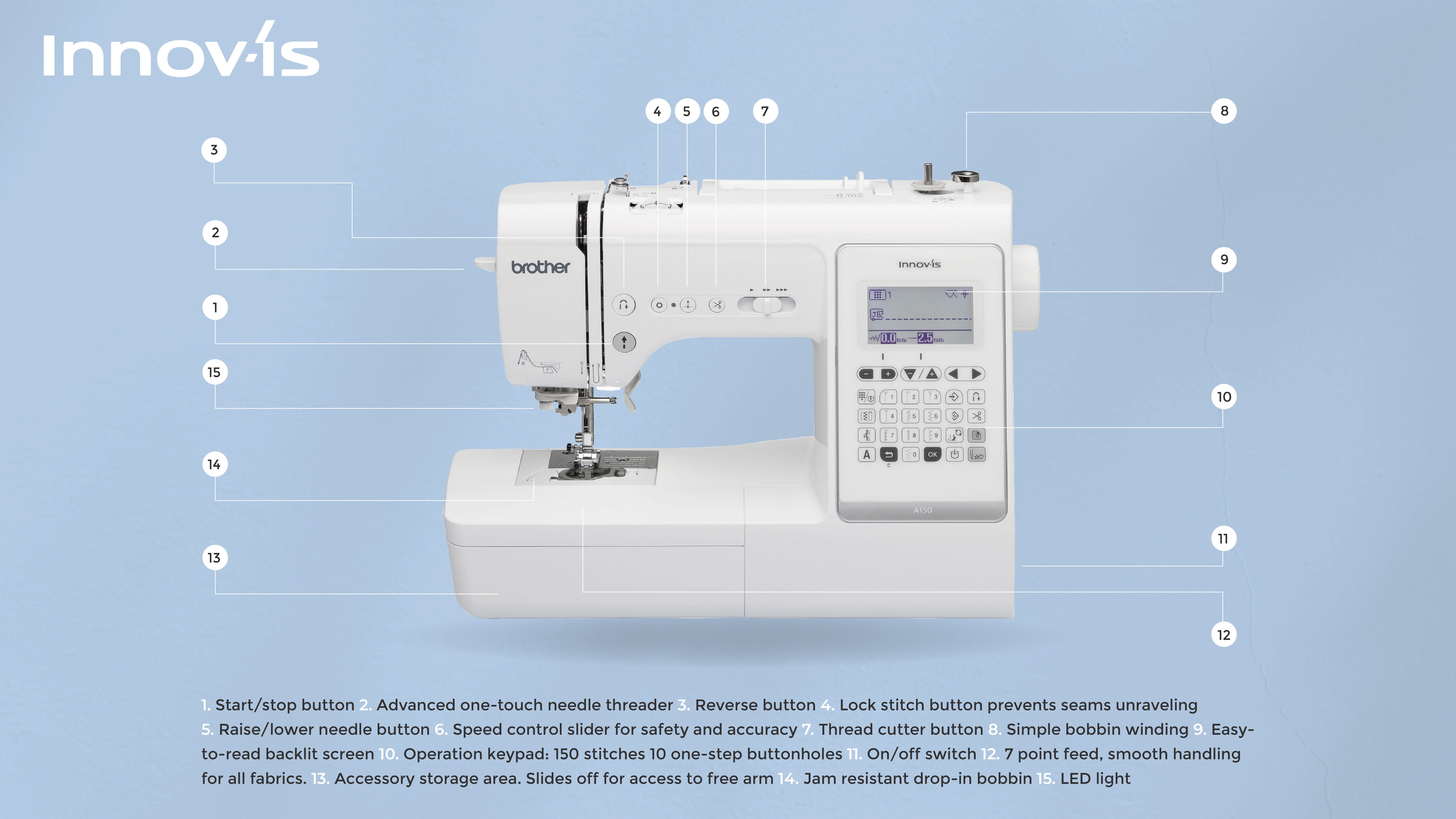 Smart sewing made simple with 150 stitches