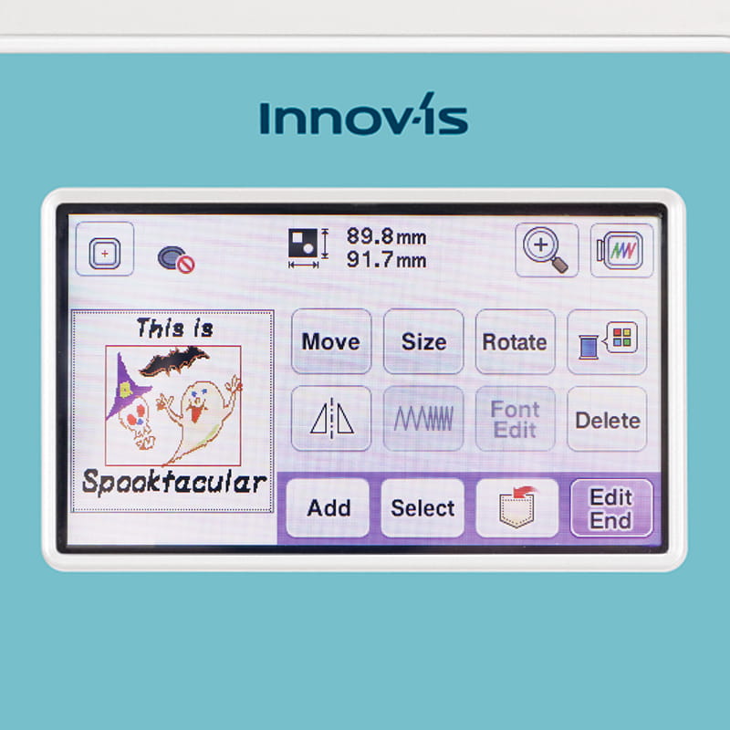 Change individual thread colours, place lettering in an arc, and more. Move designs on the touch screen display with the touch of a finger