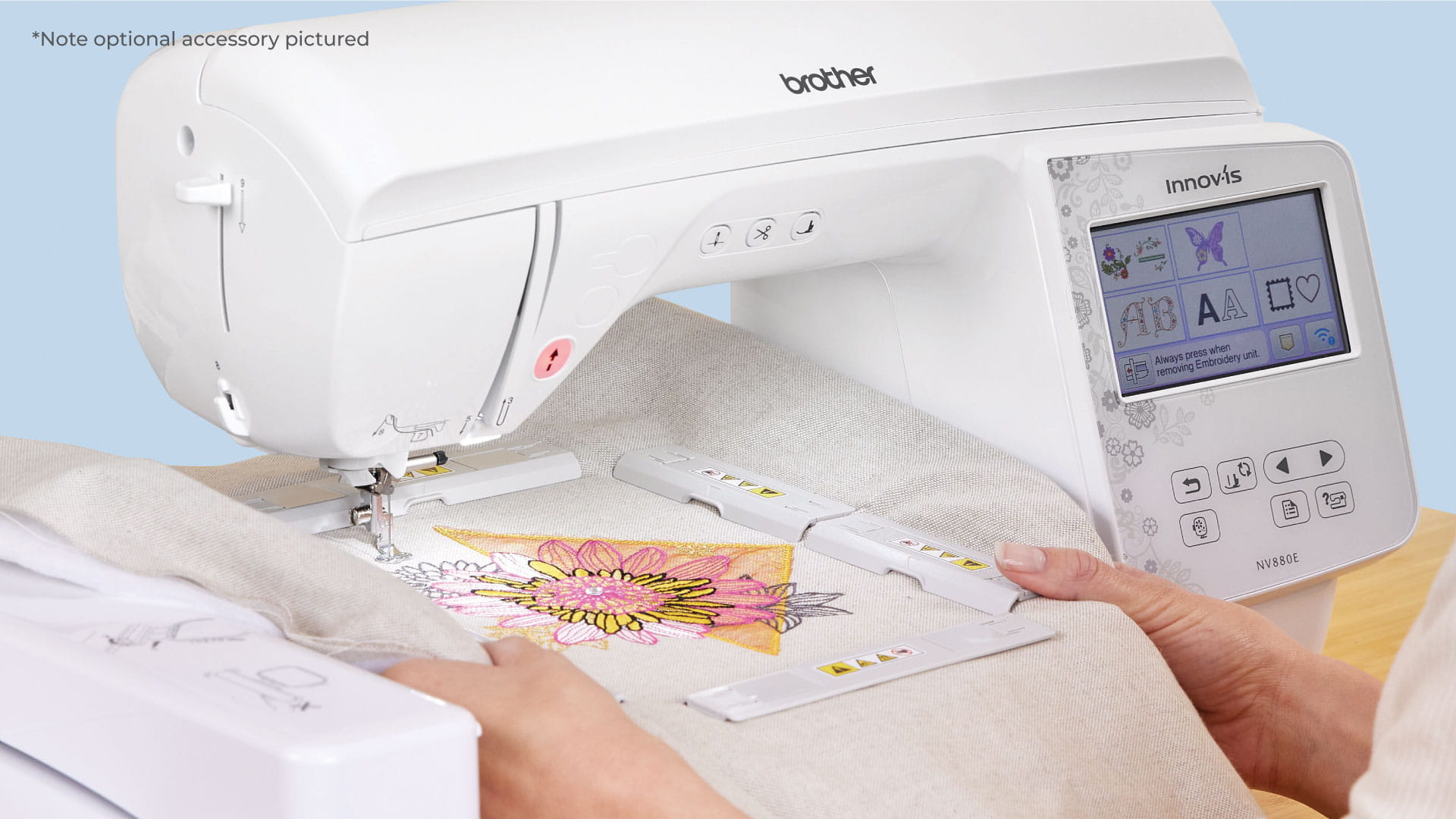 Accurately position your designs. The embroidery foot with LED pointer shows the embroidering needle drop point position