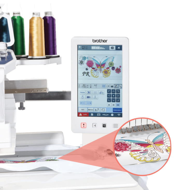 Get a real-time camera view of the needle area and see your embroidery design on your fabric, or scan your fabric or garment, preview your design on-screen, and you’re ready to embroide