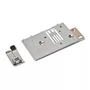 The straight stitch foot and straight stitch needle plate set helps prevent puckering of fabrics while sewing and is especially useful when sewing with lightweight fabrics.