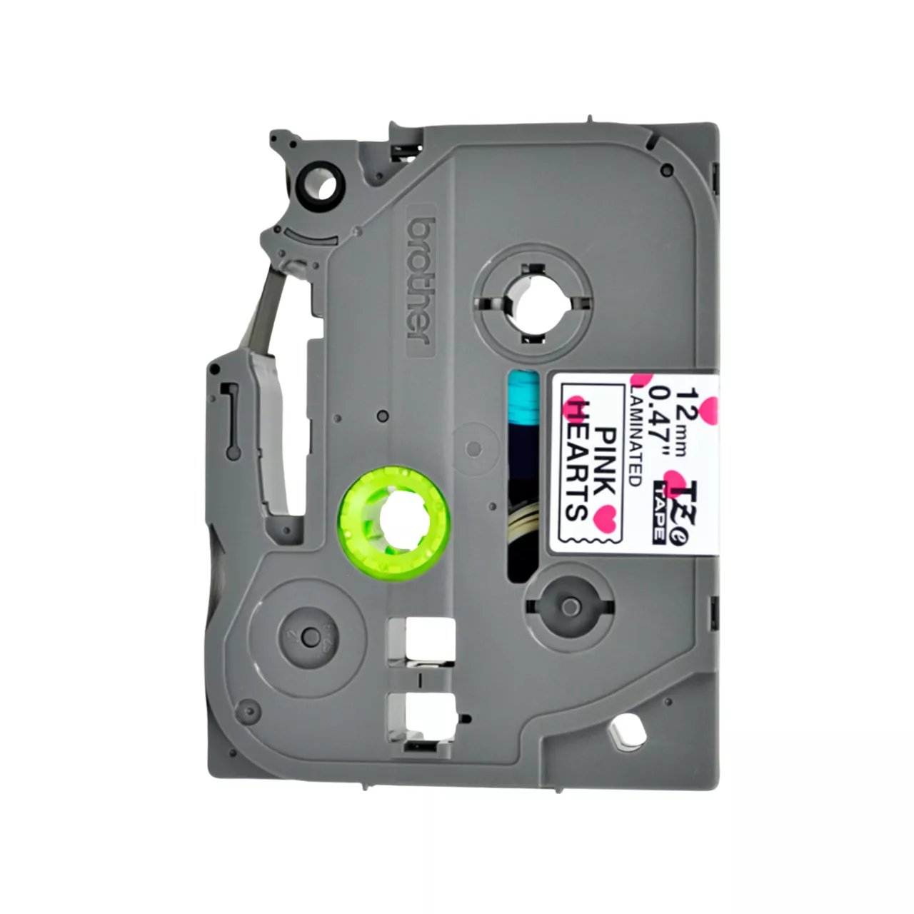 TZe-MPPH31 Laminated Tape (12mm Black on Pink Hearts)